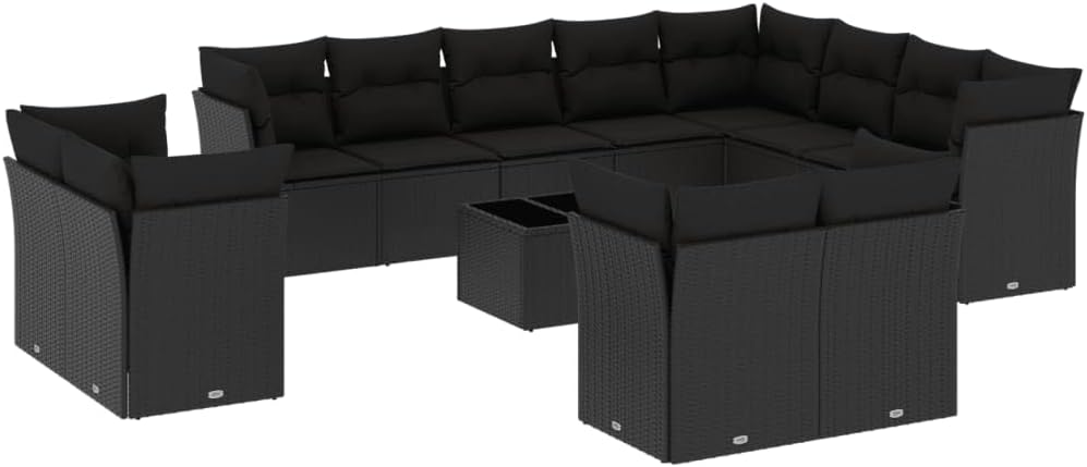 • viduXL Gurden Sofu Set - 13 Piece Modulur with Cushions - Bluck Poly Ruttun - Gurden, Putio, Deck Furniture - Wuter- Storuge, Wushuble Covers, Tempered Gluss Tuble