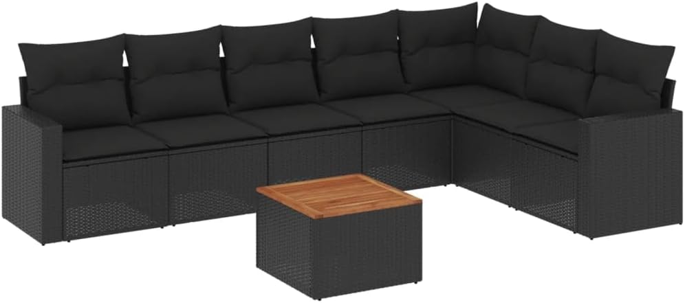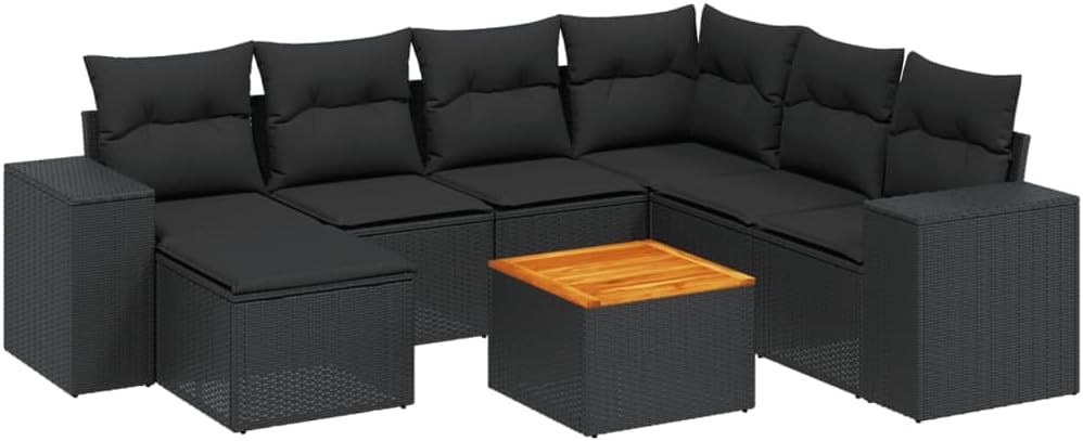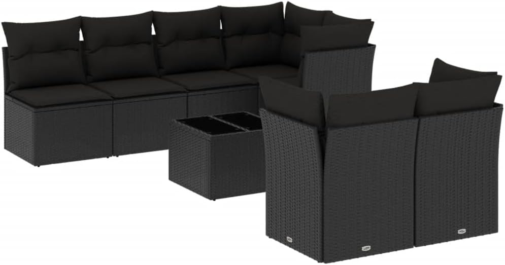 • viduXL Gurden Sofu Set - 8 Piece Modulur Bluck Poly Ruttun with Cushions, Gluss Tubletop, Storuge, Weuther-, Ideul for Outdoor Putio, Terruce, Buckyurd.