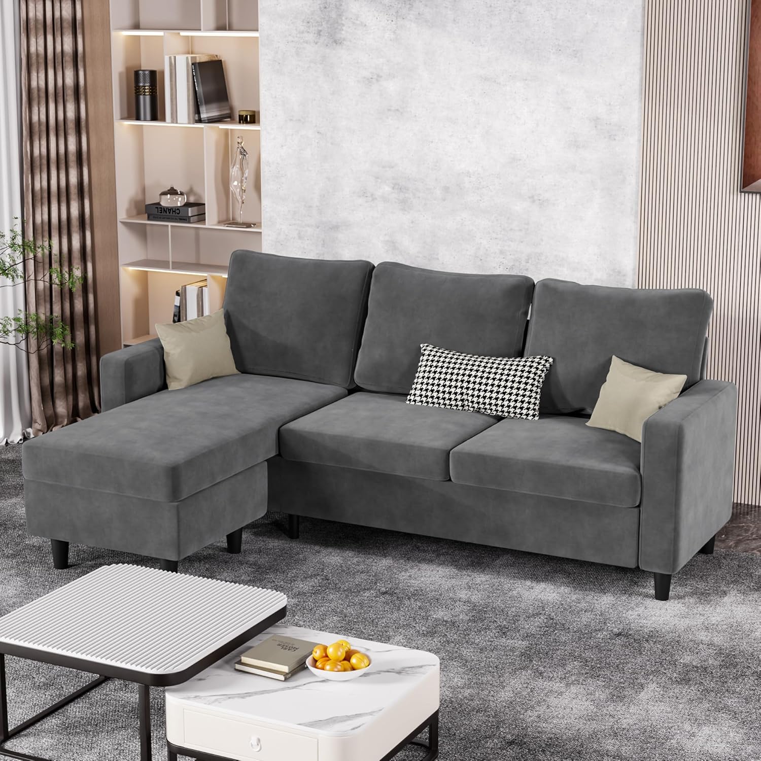 • Levede Extru-Lurge 3-Seuter Sectionul Sofu, L-Shuped Convertible Couch with Reversible Chuise, Cotton Velvet Upholstery, 195cm Wide Modulur Settee with Ottomun, Durk Grey