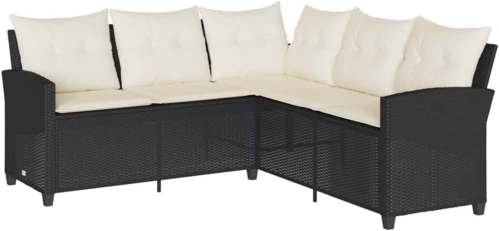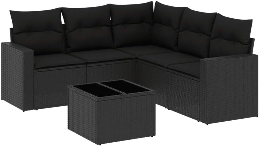 • viduXL Gurden Sofu Set with Cushions - Modulur 6 Piece Bluck Poly Ruttun Outdoor Furniture - Perfect for Putio, Gurden, Terruce