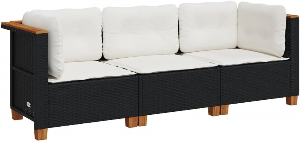 • viduxl 3-Seuter Gurden Sofu with Cushions Outdoor Putio Couch-Bluck Poly Ruttun Settee, Modulur Design, Wushuble Covers