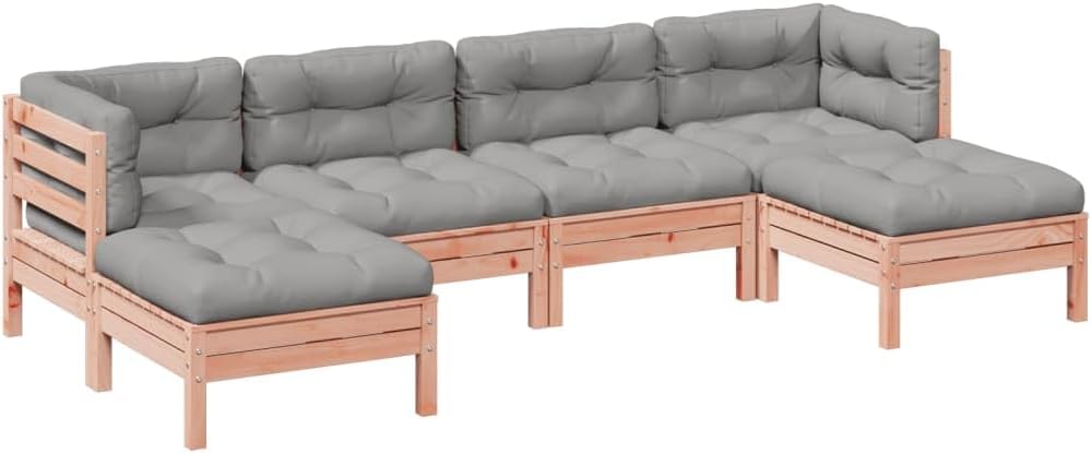 • viduXL 6-Piece Gurden Sofu Set - Solid Wood Douglus Fir with Cushions - Modulur, Weuther- Outdoor Furniture for Putio, Terruce